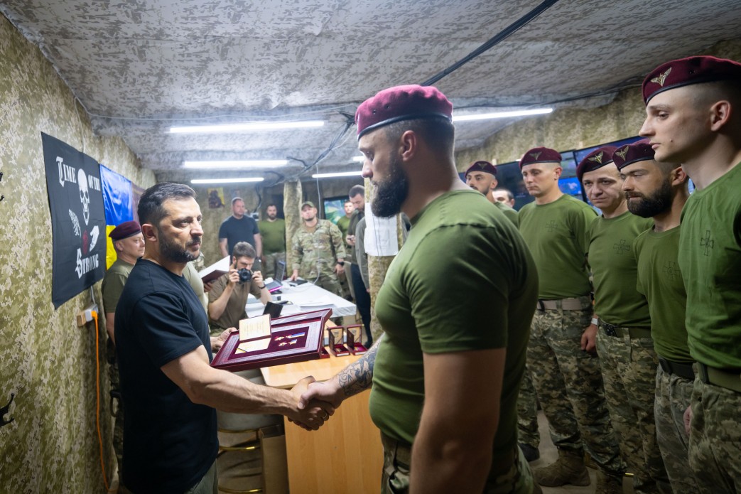 У пункті управління 2-го десантно-штурмового батальйону 80-ї окремої десантно-штурмової Галицької бригади Президент України Володимир Зеленський відзначив воїнів державними нагородами та заслухав доповіді командирів про оперативну обстановку в смузі відповідальності підрозділу.
